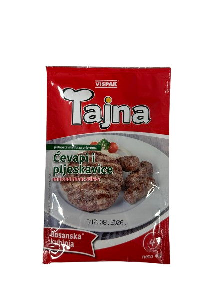 TAJNA Čevapi in Pleskavica je skrbno izbrana mešanica začimb, ki doda tradicionalnim čevapom in pleskavicam bogat in avtentičen okus. Popolna za pripravo sočnih in aromatičnih mesnih jedi, ki bodo navdušile vse ljubitelje balkanske kulinarike.