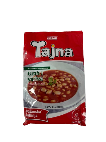 TAJNA za fižol je skrbno izbrana mešanica začimb, ki popestri okus vsake jedi s fižolom. Idealna za pripravo bogatih, aromatičnih enolončnic in juh, ki navdušijo z domačim pridihom.